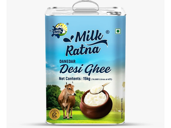 MILK RATNA Desi Ghee (15 Kg Tin) is crafted from pure and fresh milk sourced from the rich dairy belt surrounding our manufacturing unit. It consistently delivers 30+ RM quality and is Gas Chromatography (GC) tested and approved. The ghee is widely recognized and appreciated by leading end consumers for its superior taste and purity.