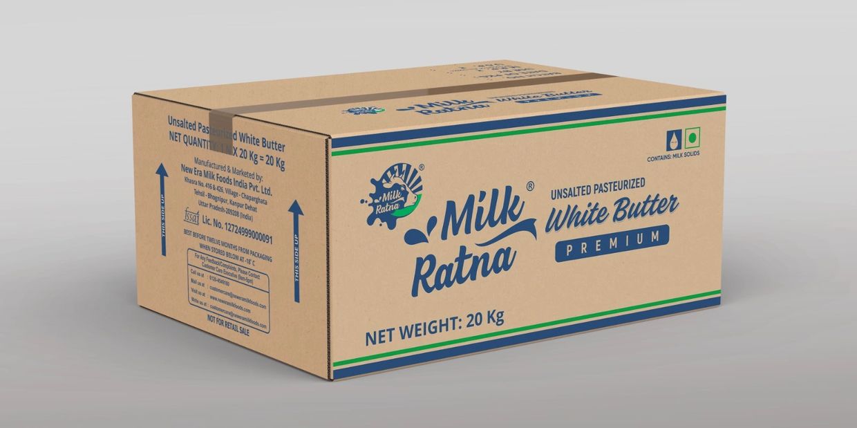 MILK RATNA White Butter is produced from fresh pasteurized cream by Continuous Butter Making Machine maintaining strict hygiene standards and is untouched by hand. Meets 30+ RM and is verified for purity through Gas Chromatography (GC) testing. The butter is ideal for Ice Cream & Bakery products, especially suited for ghee production including flavored ghee and pakka ghee for sweet makers.
